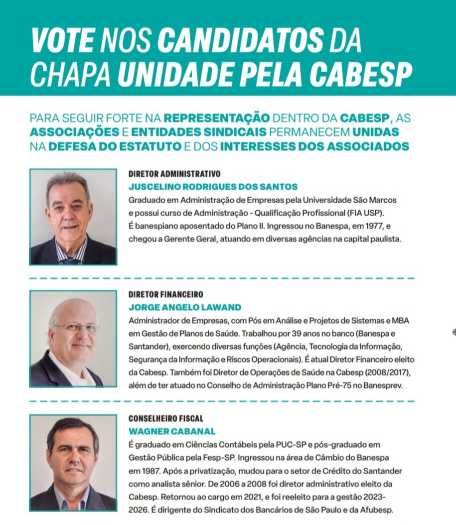 Vote nos candidatos da Chapa Unidade Pela Cabesp