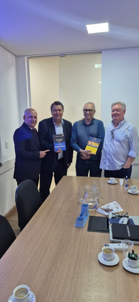 Em um momento especial do encontro, o visitante presenteou a equipe da Mutuoprev com publicações de sua autoria sobre Administração, Governança e Bem-Estar Financeiro, contribuindo com reflexões valiosas sobre gestão responsável e desenvolvimento do setor.